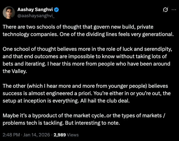 Aashay is describing the new phenomenon of “king making” or engineered success via the right cap table/club deal/a priori social proof. The setup at inception is everything.